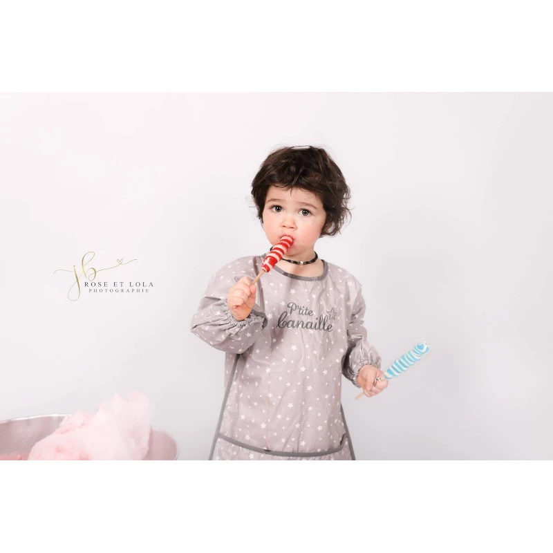 Découvrez le bavoir tablier Bb&co ! Très pratique grâce à sa fabrication en coton enduit, ce tablier à manches longues est Parfait pour les petits gourmands et protégera les vêtements de bébé des taches et des petites maladresses lors de ses repas !
