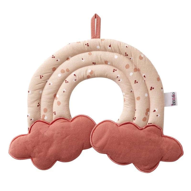 La décoration murale arc-en-ciel BB&Co Blooming Day associe harmonieusement un tissu rose nude imprimé de jolies fleurs dans les tons de tomette et marsala, et un coton uni tomette. Elle peut s’accrocher partout, grâce à sa languette en tissu, selon vos envies : sur un mur au-dessus du lit ou de la commode à langer, sur le parc… ou pour ajouter une touche personnelle à un rideau ou à un meuble. Laissez parler votre créativité !