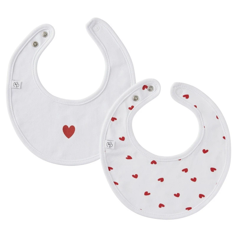 Le lot de 2 bavoirs naissance en coton BB&Co propose deux styles différents ! Le premier bavoir est décoré d’un unique cœur en son centre et l’autre bavette nouveau-né est recouverte d’une multitude de petites cœurs rouges. Ils sont vraiment faciles à coordonner avec toutes les tenues de bébé !